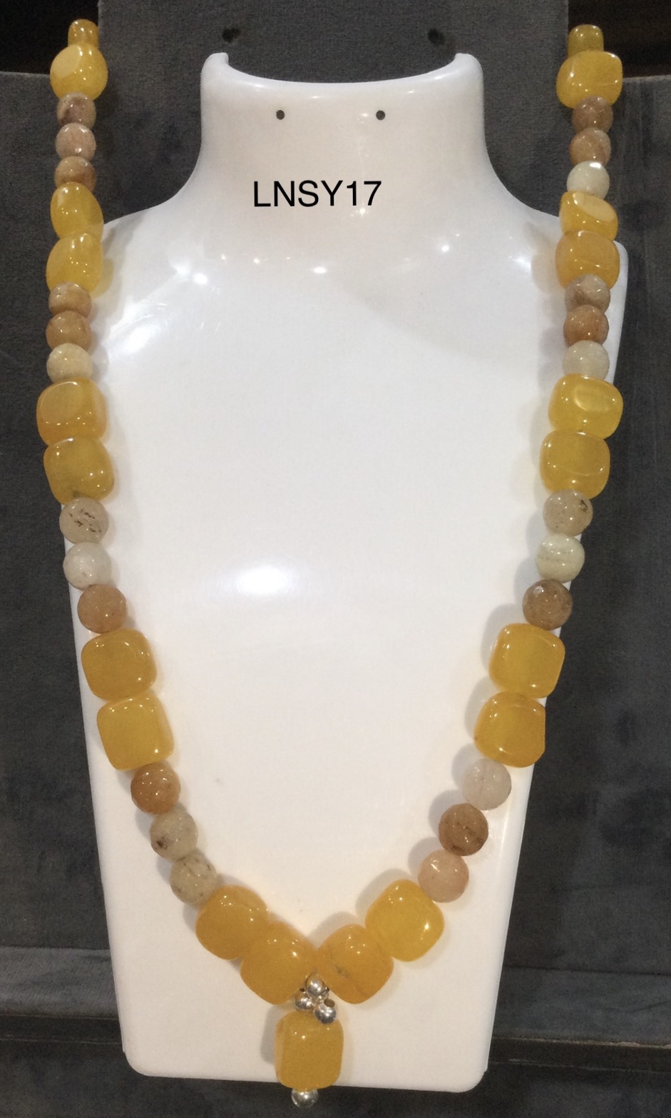 Long Yellow Stone Necklace with toggle Clasp