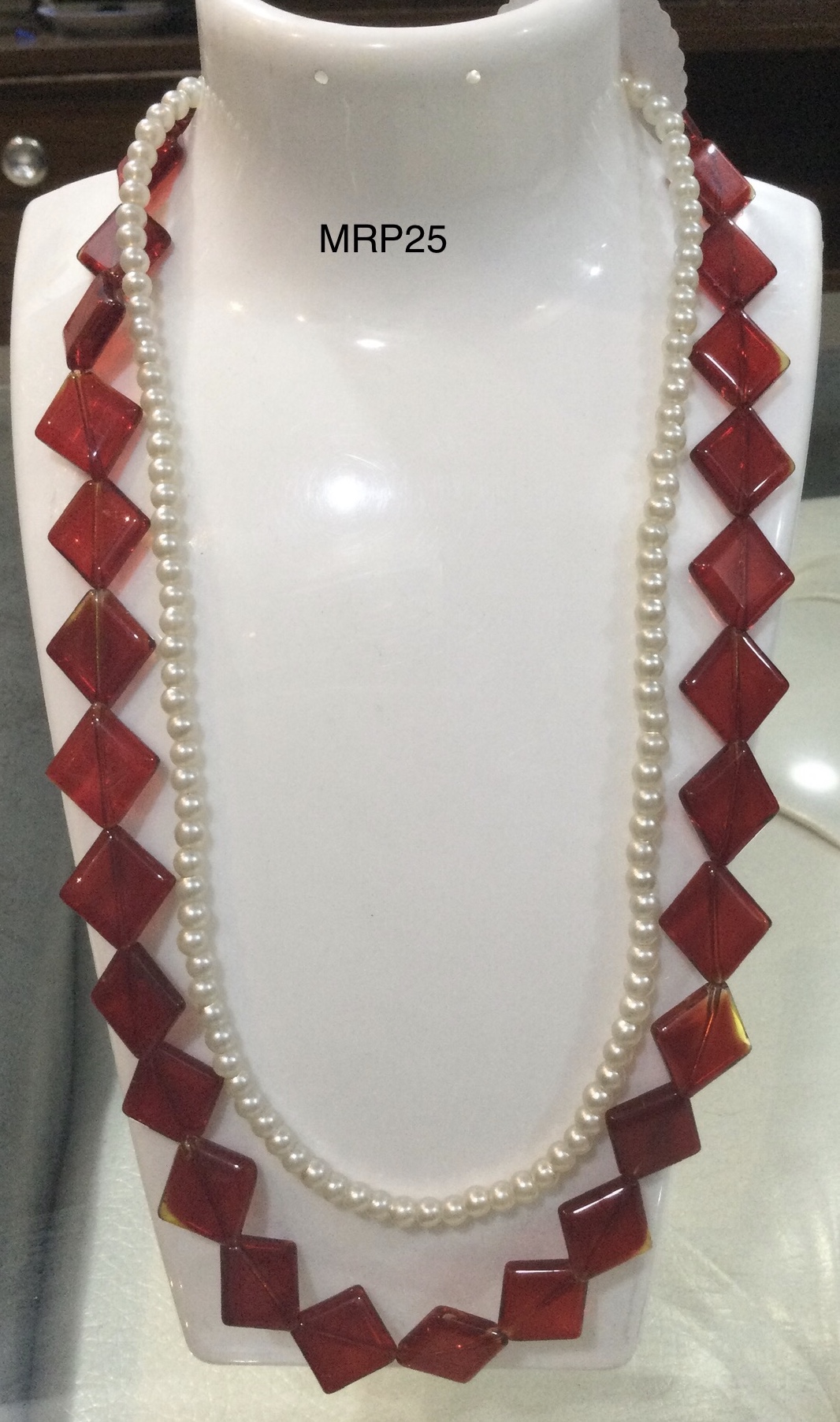 MATERIAL :Glass Marron Kite shaped Stones, with Pearl String